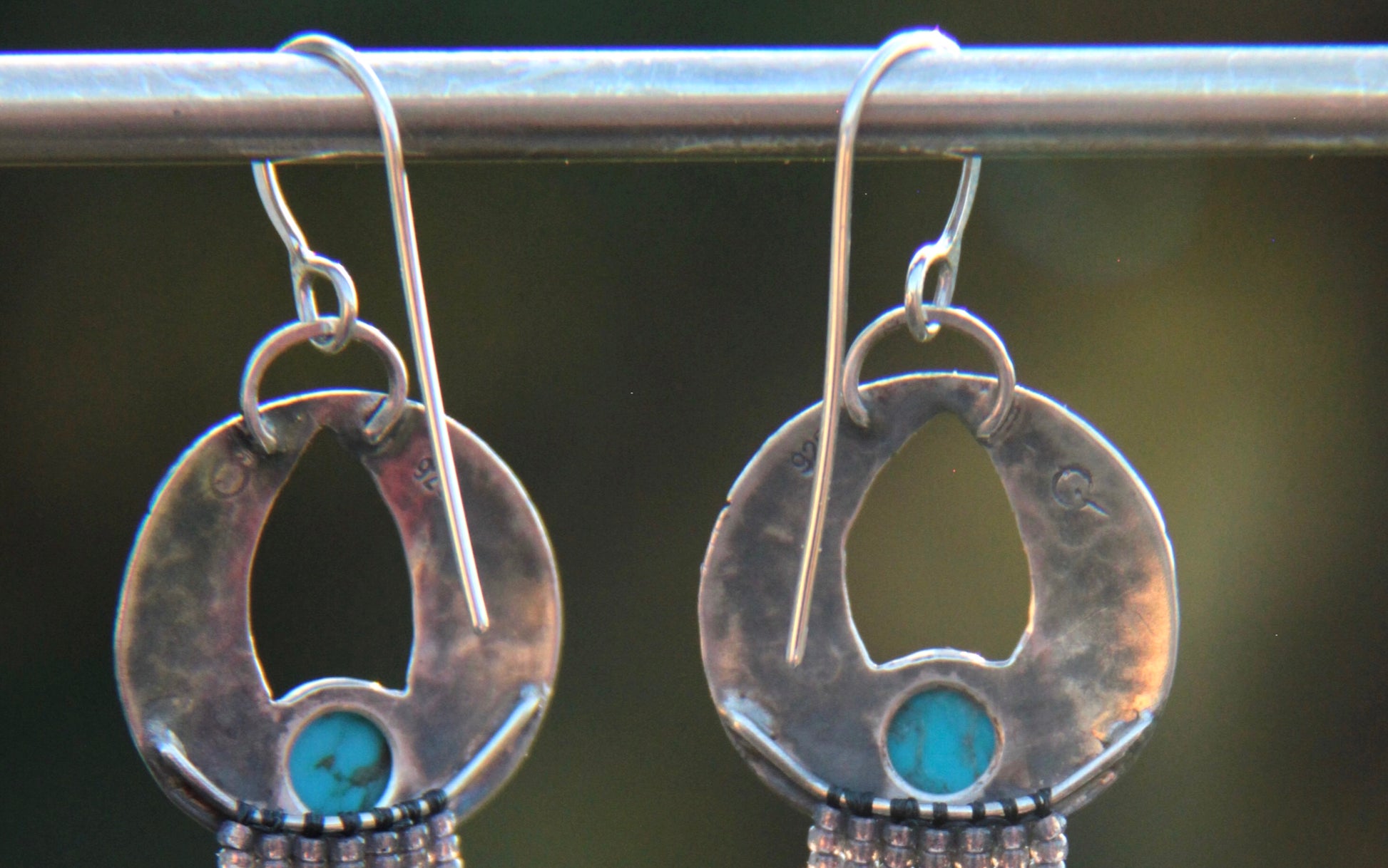 The ear wires are hand made, soldered sterling silver