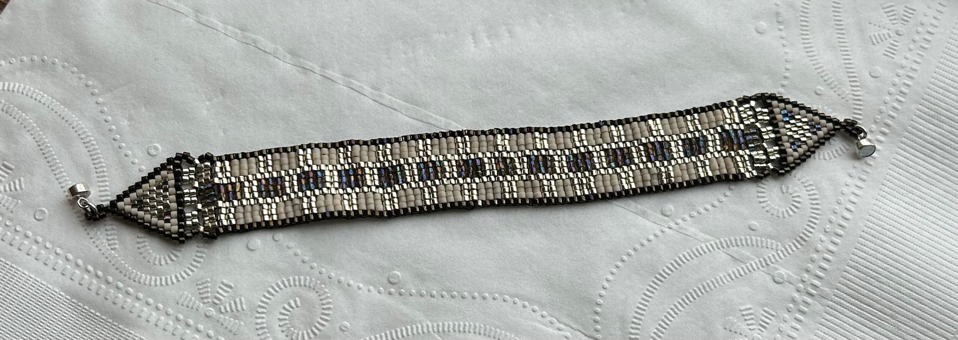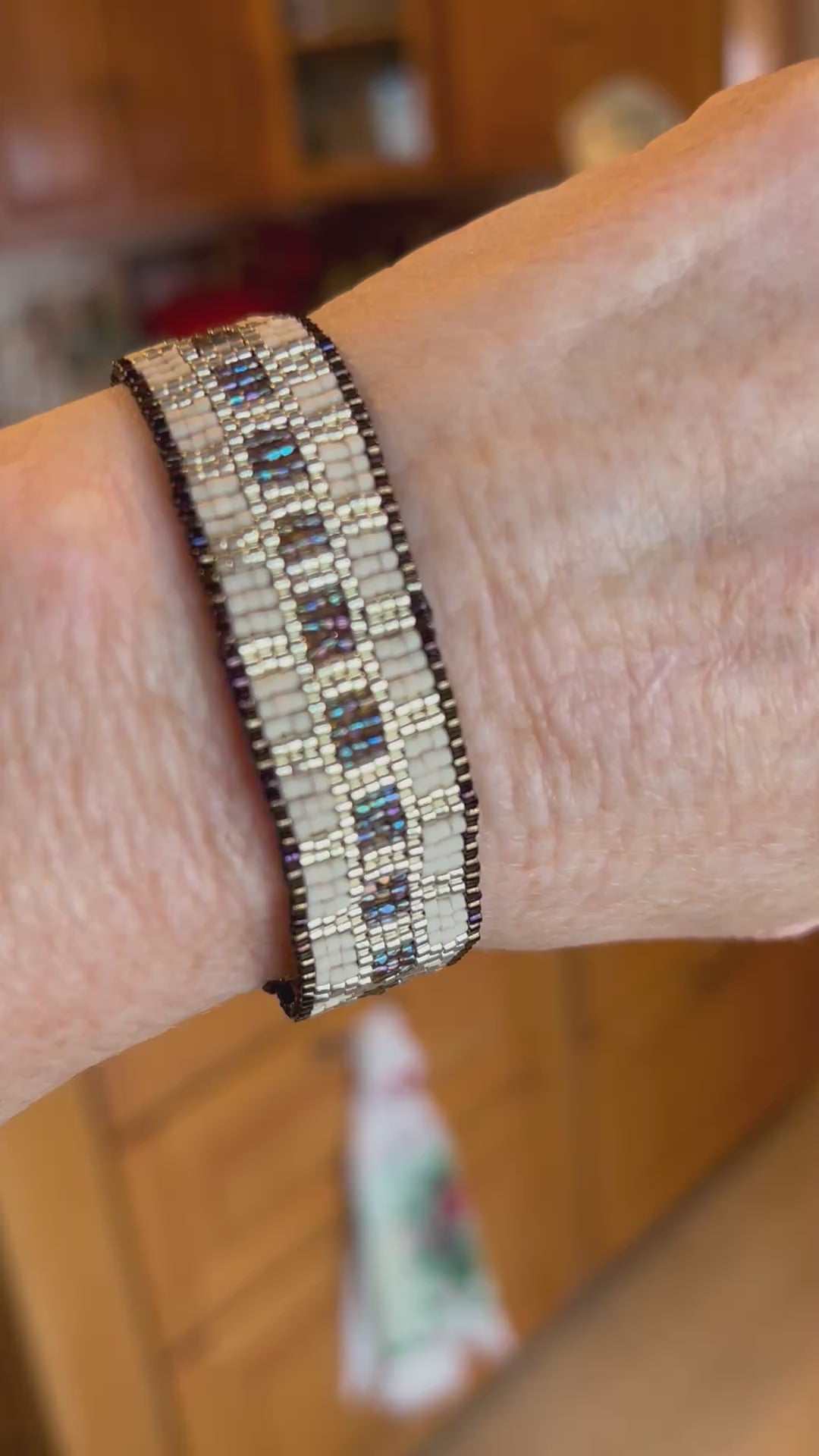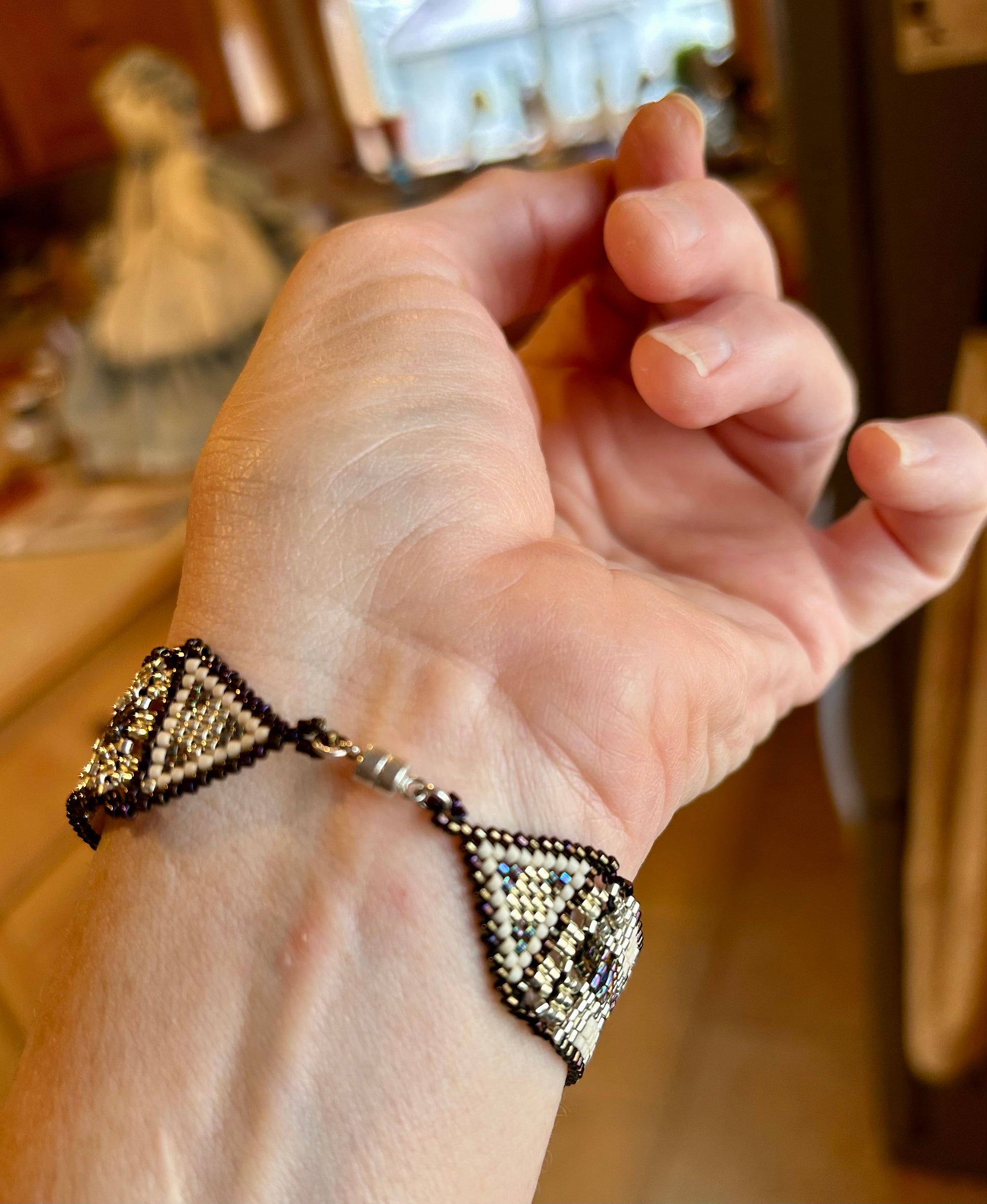 Japanese Delica beads intricately woven into an elegant band with a decidedly Egyptian flavor.